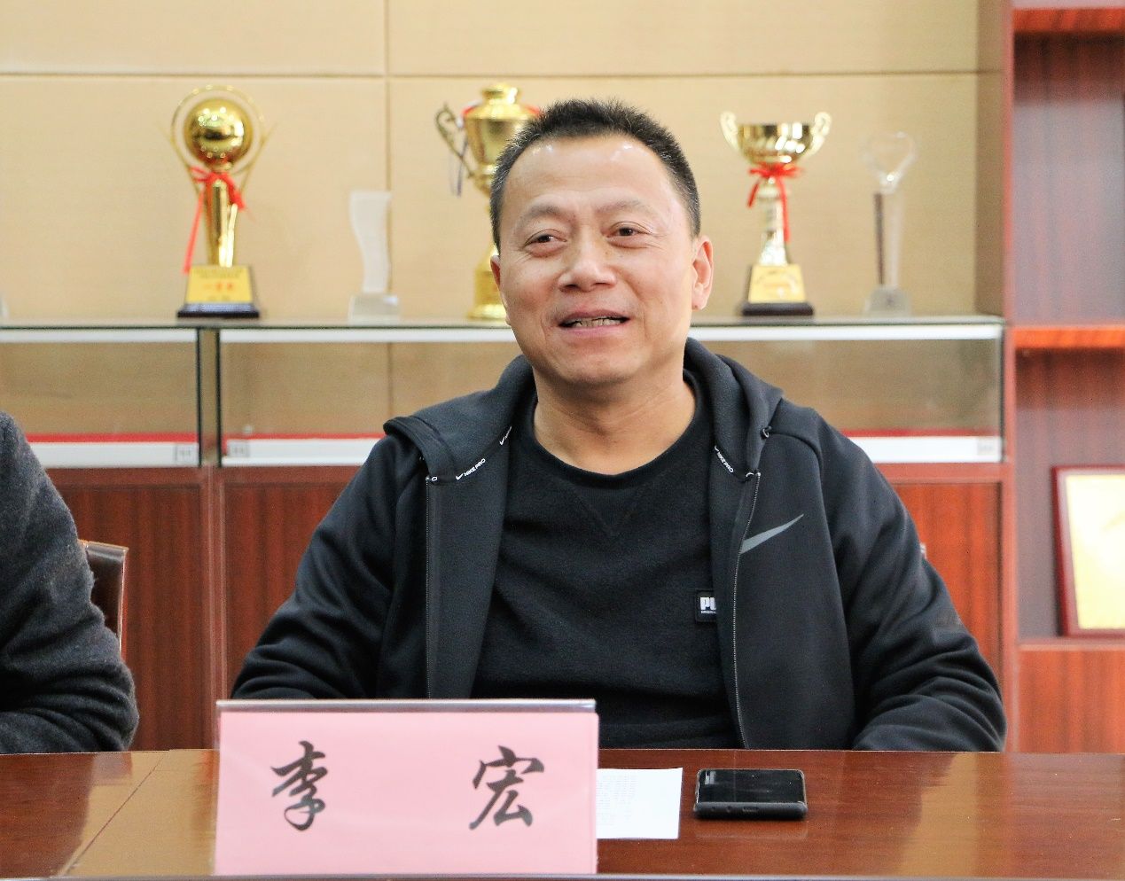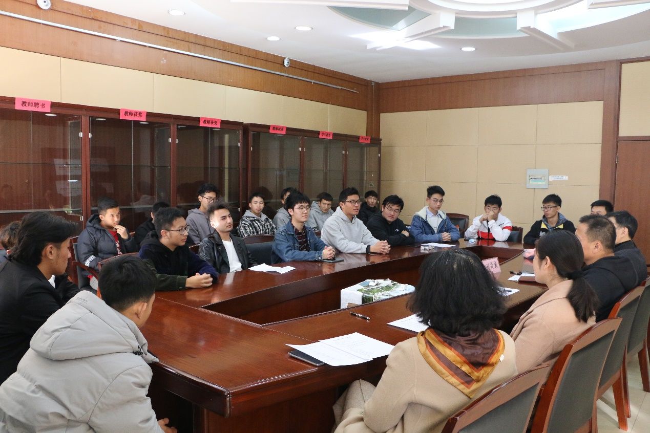 在正式会议开始前,领导老师们与足球队员进行了亲切的问候和交谈。李宏书记就足球队人员构成、取得成就和学院体育赛事等方面与同学们展开亲切交流,并用“梦之队”一词表达对我院足球队的高度赞许。