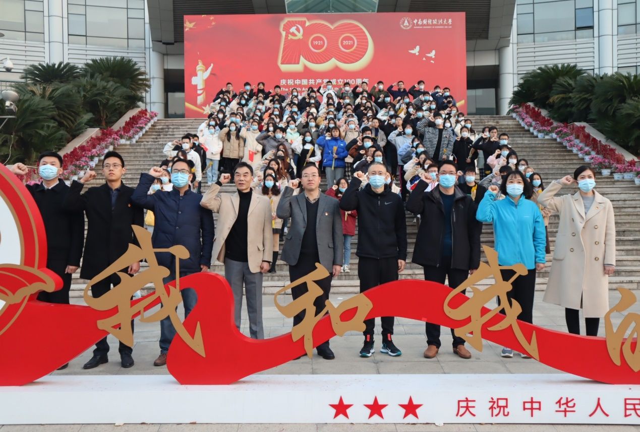 百年风雨兼程,中国共产党在苦难中成长,在挫折中奋起,在奋斗中壮大。百年风华正茂,中国共产党坚守初心,艰苦奋斗,创造了彪炳史册的伟大奇迹。奏唱完国歌后紧接着的是全体党员重温入党誓词,与会师生神情肃穆,铿锵的誓言里饱含着对党的崇高敬意。