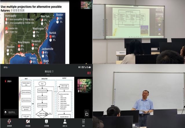 宋教授首先表达了对学院二十周年院庆的祝福,随后进行了题为“韧性城市与空间规划治理”的学术报告。她从“城市韧性的内涵”、“合作性空间规划过程”以及“韧性空间规划的政策工具”等方面给大家讲解了空间规划国际前沿理念与实践案例。她认为韧性城市的规划目标是4个E的平衡,她强调韧性城市规划需要灵活性与适应性,不能只靠工具理性,而需要以人为本,通过合作性规划过程来推进,同时她介绍了“韧性积分卡”、“土地混合利用”、“减碳绩效的容积率奖励”等创新型的政策工具。讲座为从事空间规划与城市治理领域研究的师生们打开了视野,大家深受启发。交流环节,线上老师同学们争相提问交流,就规划如何做到刚性与灵活性兼顾、规划中如何满足流动人口需求及不确定性风险、土地集约利用与弹性空间的权衡等问题进行了探讨。