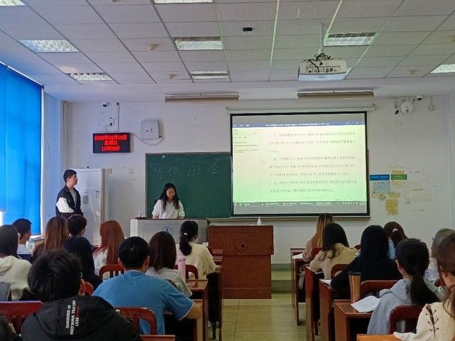 会议第二项,劳保2102班团支书胡慧娟呼吁同学们“增强危机忧患意识,筑牢国家安全基石”。春季风干物燥,正处火灾高发期,且校园内电动车数量较多,电动车摆放不规范、“飞线充电”等现象普遍出现,校园消防安全亟待关注。同学们要谨记不可超负荷用电,谨防因电脑等长时间不断电而导致局部过热所引起的电气火灾。小至个人财产安全,大至校园安全、国家安全,只有拧紧每一个“安全阀”,才能筑起坚固的“防火墙”。国家安全是安邦定国的重要基石,是人民幸福安康的基本要求,维护国家安全是每一个大学生的责任与义务。同学们要树立正确的价值观,辨识危害国家安全的过激言论,不发表涉密图文,不泄露科研数据,严守国家安全关。