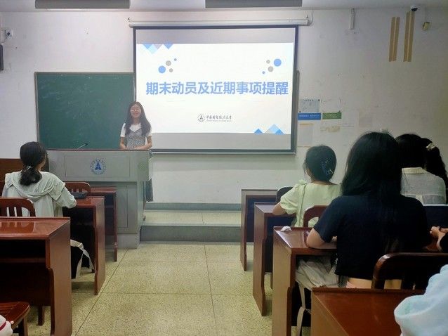 会议第三项,班长进行期末考试动员以及近期事项提醒。临近期末考试,李红仙同学也提醒大家要及时调整状态,专心复习期末考试相关内容。同时,千万不要抱有侥幸心理进行考试作弊,要谨记诚信美德,相信大家的付出都会得到回报。此外,近期校园充电桩已投入使用,希望大家杜绝飞线充电和蓄电池室内充电的方式为电动车充电,避免安全事故发生。为了自己和他人的安全,务必遵守校园规章制度,维护校园和谐稳定。