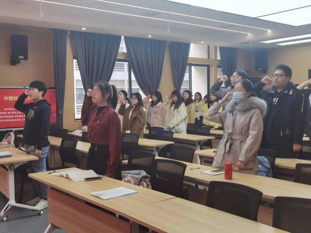 在民主评议后,党支部召开了以“凝心聚力谋跨越,奋发有为谱新篇”为主题的12月党日活动。会上,同志们先是全体起立,奏唱国歌,随后由薛晴予同志带领支部全体党员面向党旗庄严宣誓,重温入党誓词,深刻感悟初心使命。
