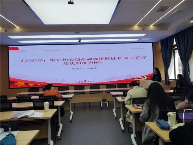 接着由李诗悦同志领学《习近平:牢记初心使命顽强拼搏进取奋力跑好历史的接力棒》,习近平总书记对年轻干部提出明确要求、寄予殷切期望。就如何奋力跑好历史的接力棒,李诗悦同志结合大学生实际分享了自己的理解和感受,她谈到在当前充满机遇与挑战的时代背景下,青年大学生应当自觉成为坚定信仰和实践党的创新理论的典范,矢志不渝地做一名对党绝对忠诚、言行一致的模范践行者,要敢于担当,持续奋斗,勇做新时代的弄潮儿