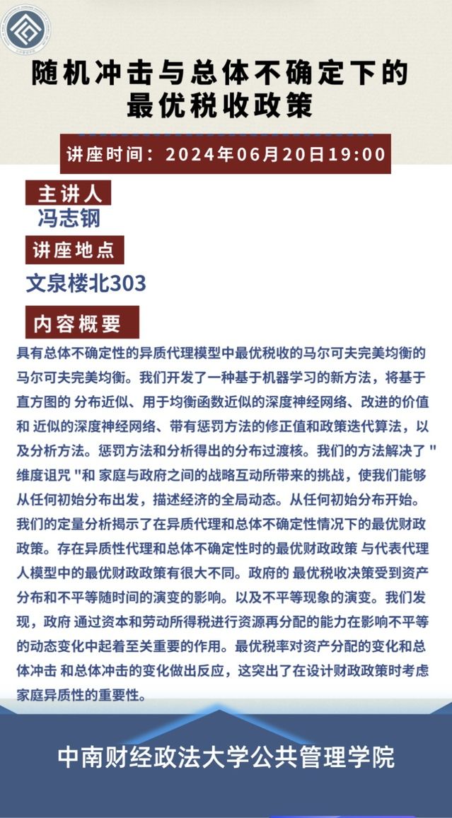 随机冲击与总体不确定下的最优税收政策讲座通知
