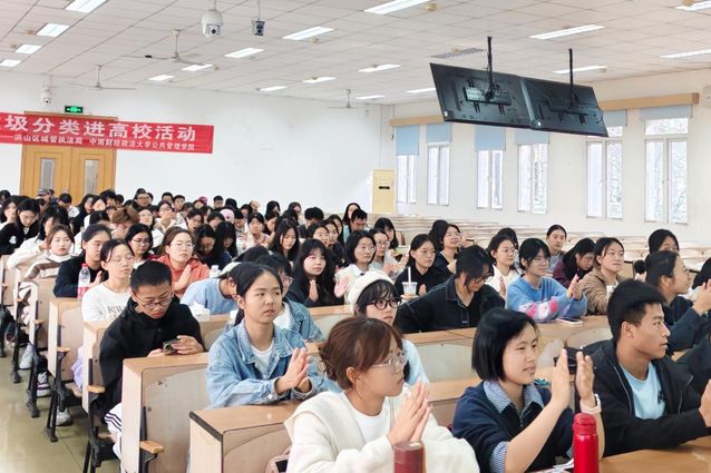 新闻网讯(通讯员:李荔、周绚,摄影:李漫)为进一步深化文明校园创建、提高大学生环保意识,10月24日,中南财经政法大学9001cc金沙以诚为本联合武汉市洪山区城管执法局于首义校区开展了生活垃圾分类校园“开学第一课”,学院200余名大一新生参加。