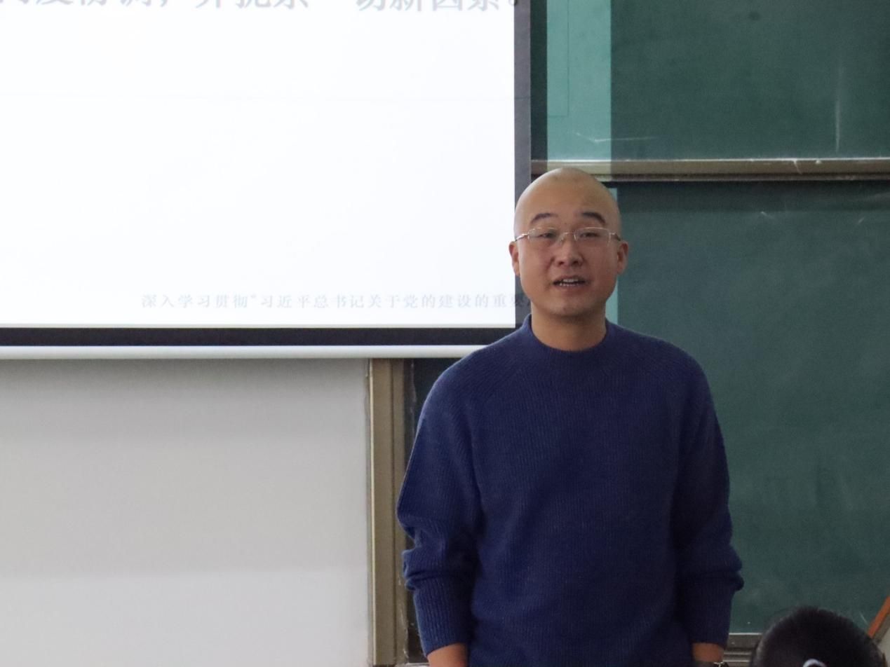 随后,马克思主义学院刘海波老师为同学们讲授《学习贯彻习近平总书记关于党的建设的重要论述》,他以幽默风趣的语言结合具体事例,说明了新时代党的建设的重要性、习近平总书记关于党的建设的重要思想的丰富内涵以及重大意义。