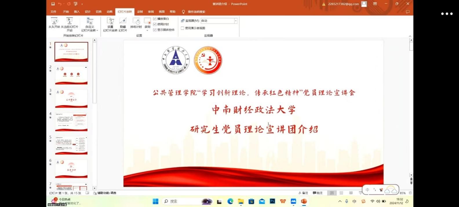 随后,研究生党员理论宣讲团成员常娜敏首先对宣传团进行详细介绍,从课程设计、校社共建、高校联建、育人时效这四个方面汇报了宣讲团过去一年的工作成果,让同学们进一步了解宣讲团在以学铸魂、以学增智、以学正风、以学促干四个方面取得的切实成效。