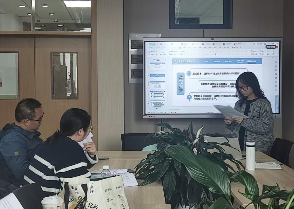 2024年11月8日,行政管理系本科生双周论坛(第3期)在文瀚楼北803B会议室成功举行。行政管理专业2022级本科生李福蓉以“地方政府在线政务服务和网络安全的组态路径研究——基于广东省21个地级市的fsQCA联动效应分析”为题,进行了汇报。会议由行政管理专业2024级研究生赵瑶瑶主持,行政管理与公共政策教研室主任杨朦老师指导,行政管理系各年级本科生参加。